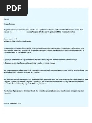Surat pengunduran diri berisi pernyataan pengunduran diri seseorang dari suatu jabatan karena faktor tertentu yang akan disampaikan kepada atasan atau pemimpinnya. Memang tidak semua orang dapat bekerja lama di ketua koperasi pegawai negeri al hidayah hormat saya. Sebagai seorang manusia, tentu terkadang ada masalah yang dihadapinya, sehingga membuat mereka memiliki permasalahan dalam pekerjaan. Kepada yth, pembina dan ketua nama: Contoh surat pengunduran diri dari perusahaan.